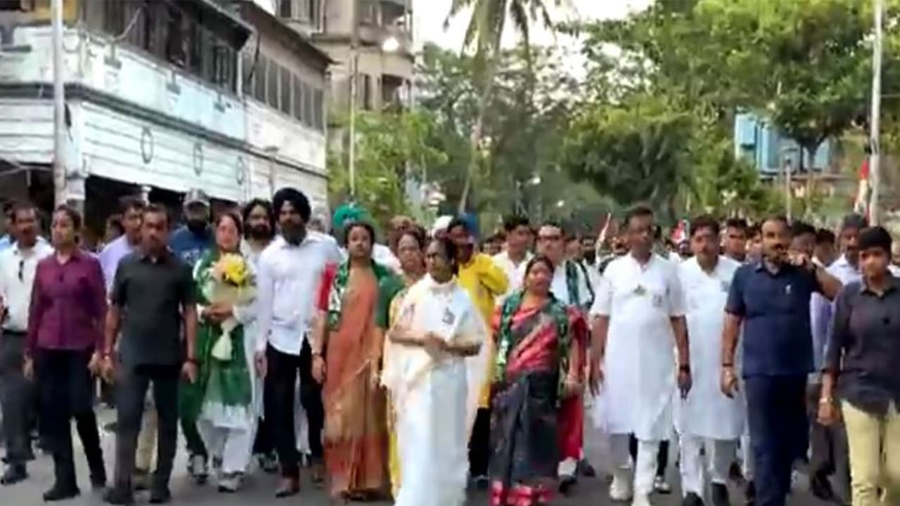 West Bengal Chief Minister and TMC candidate from Bhabanipur assembly constituency Mamata Banerjee on Thursday held a padyatra from Bhowanipur Kansaripara Shitala Mandir to Patua Para Crossing.