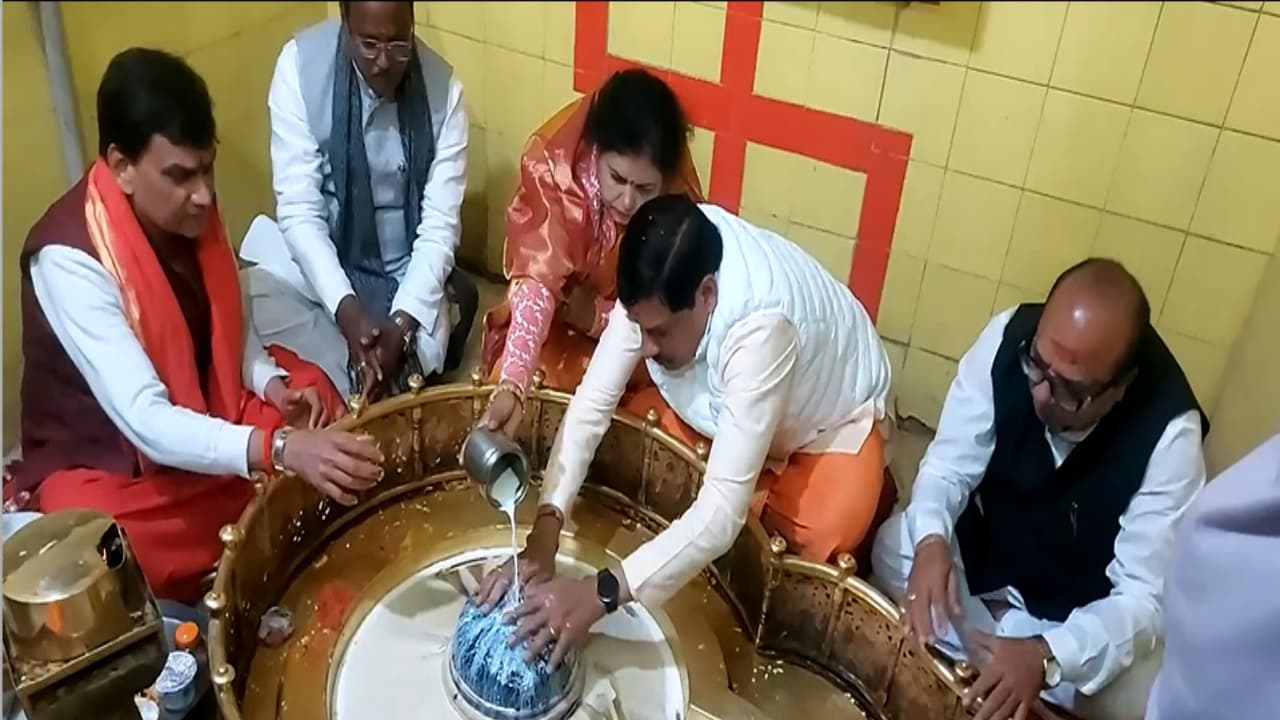 Madhya Pradesh Chief Minister Mohan Yadav on Thursday offered prayers at the Brihaspati Gurudev Temple in Ujjain district and sought blessings of the lord. CM Yadav along with his Seema Yadav reached inside the sanctum sanctorum of the temple and performed with worship rituals.