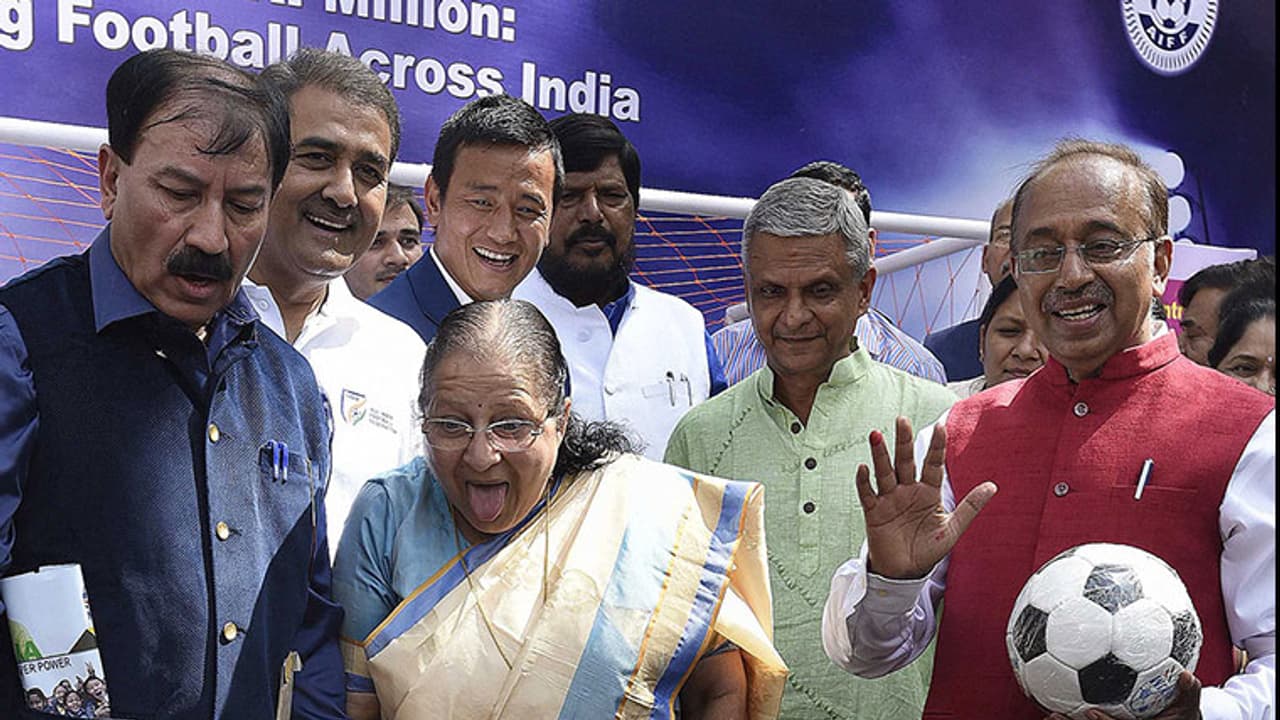 Here's something you don't see every day. Prominent ministers and MPs from the Lok Sabha decided to indulge in their playful side. Hoping to promote football, and the upcoming international FIFA U-17 World Cup, the ministers decided to kick around a bit themselves. The function was organised by the Ministry of Youth Affairs and Sports to promote Mission XI Million. The hope is to spread football to 11 million Indian students across 15000 schools. The FIFA U-17 World Cup will be held between 6 and 28 October 2017 in different cities of India, and the finale is going to be held in the Salt Lake stadium Kolkata.
