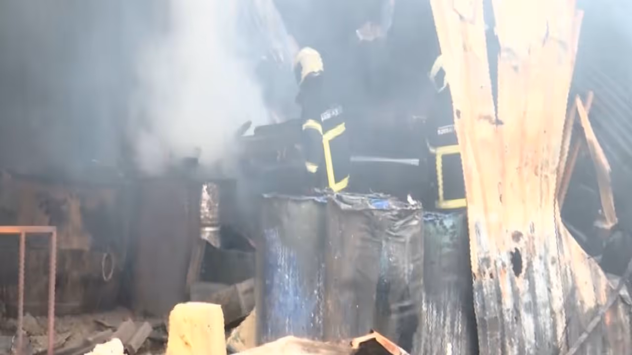 The fire was confined to four to five ground-floor scrap material units (galas). Based on initial information provided by the caller, no individuals were trapped inside the affected premises.