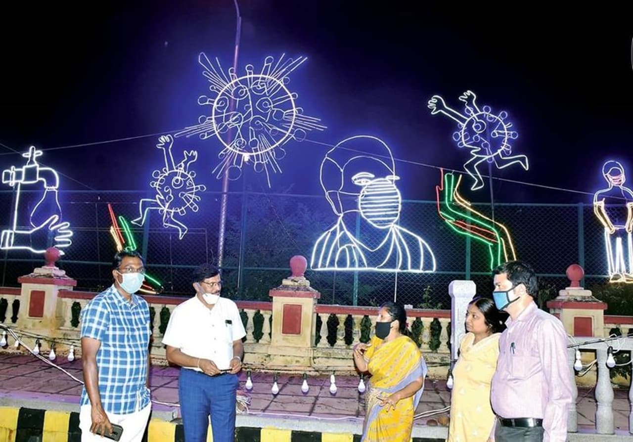 Despite the restrictions for the Mysuru Dasara celebration, the city is being decorated beautifully. Making use of the illumination and art, Mysuru is creating an awareness on the COVID-19 safety norms.