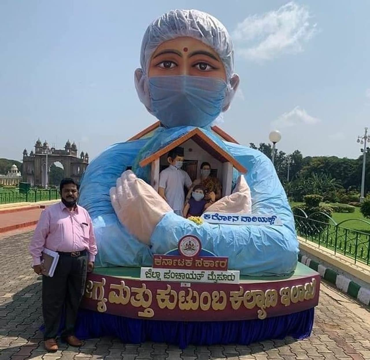 However, this year only two tableaux will take part in the Dasara procession. One of the tableaux is dedicated to the COVID-19 warriors who have been risking their lives caring for the people of the state and the country.