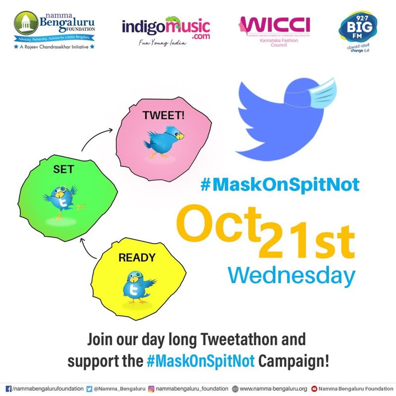 Being a responsible citizen you can participate in the campaign and show your support by sending in videos, selfies, memes, drawings, paintings, or make ur hero on a mask, rangolis with the #MaskOnSpitNot and tag @Namma_Bengaluru and @IndigoMusicCom.