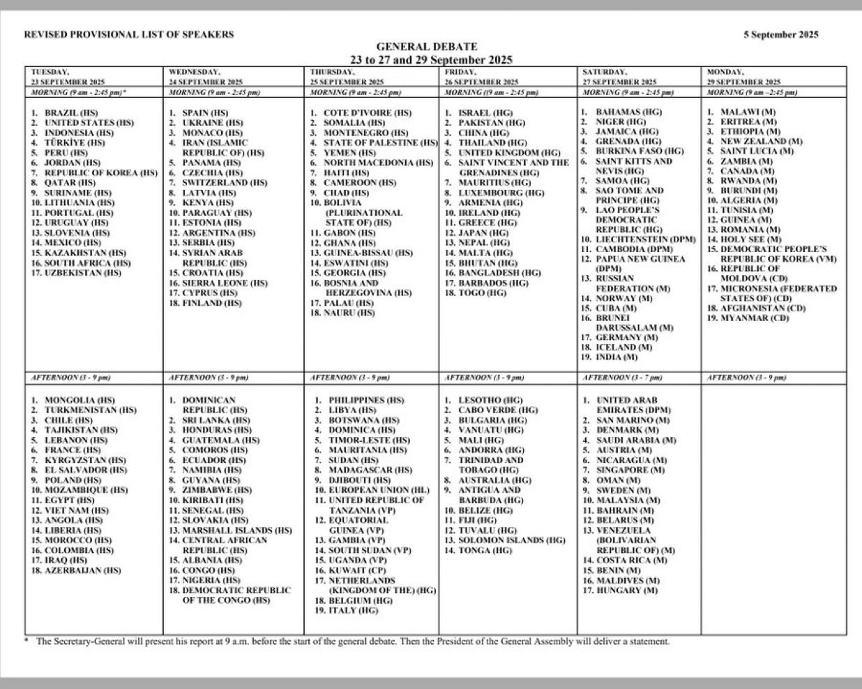The General Assembly debate will run from September 23 to 29, with Brazil delivering the opening address, followed by US President Donald Trump. Given Trump’s past criticisms of the UN, his remarks are expected to draw close international attention.