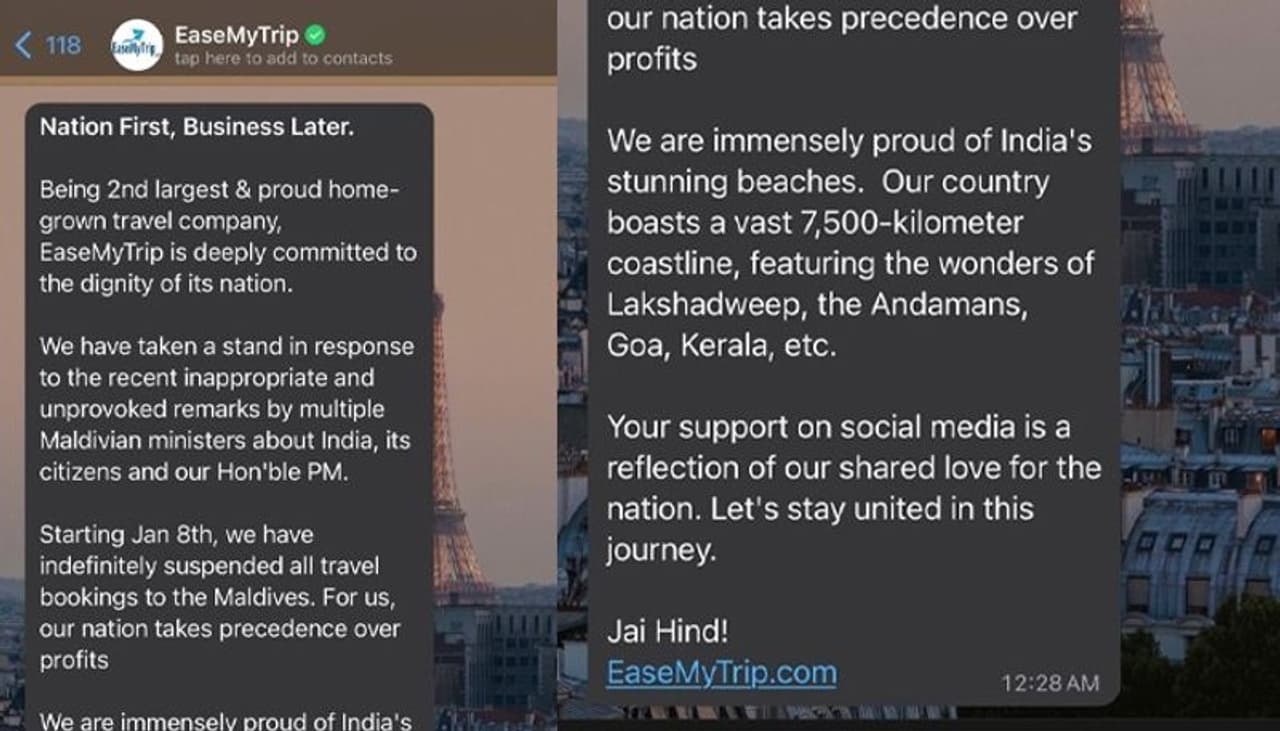 India and the Maldives, traditionally close partners, have recently experienced a strain in their relationship due derogatory remarks about Prime Minister Narendra Modi on social media. EaseMyTrip, specifically, has been pretty vocal on the issue. Take a look at the viral WhatsApp post.