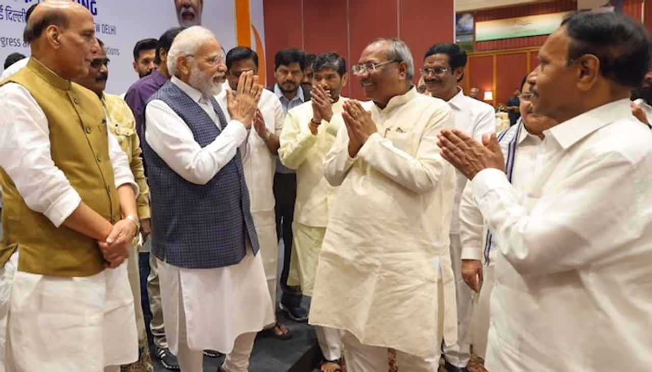 Earlier in the day, Prime Minister Modi expressed his delight at the participation of the valued NDA partners from various parts of India, emphasizing the enduring nature of their alliance and their shared objective of national progress and fulfilling regional aspirations.
