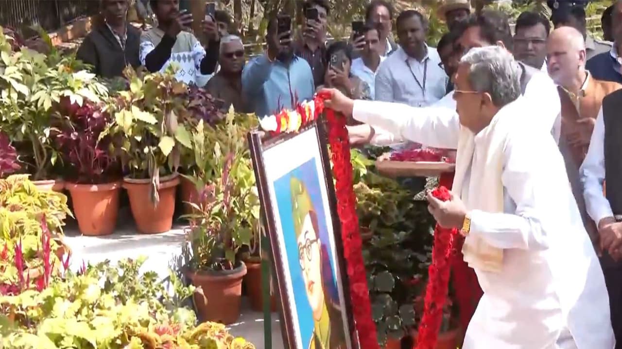 Bengaluru (Karnataka) [India], January 23 (ANI) Karnataka Chief Minister Siddaramaiah on Friday paid floral tributes to Netaji Subhas Chandra Bose on his 129th birth anniversary in Bengaluru.