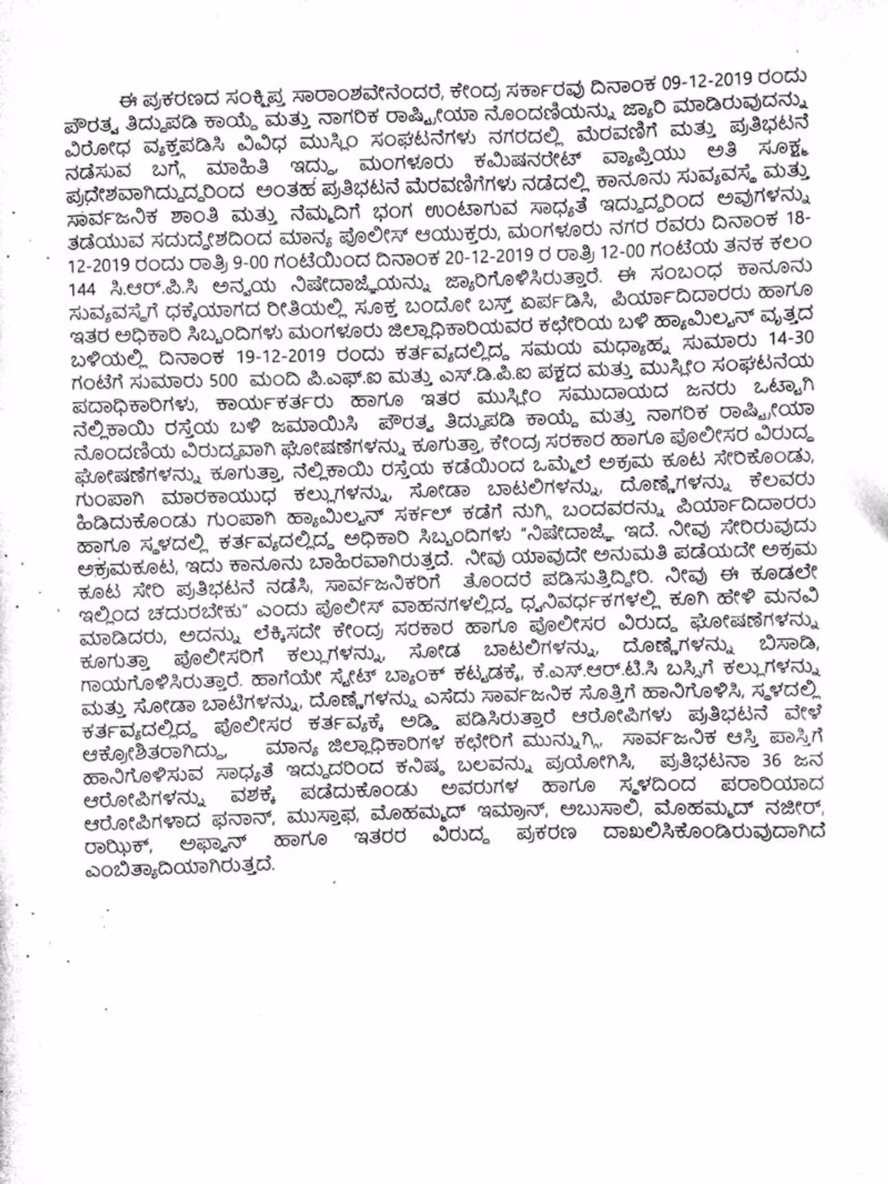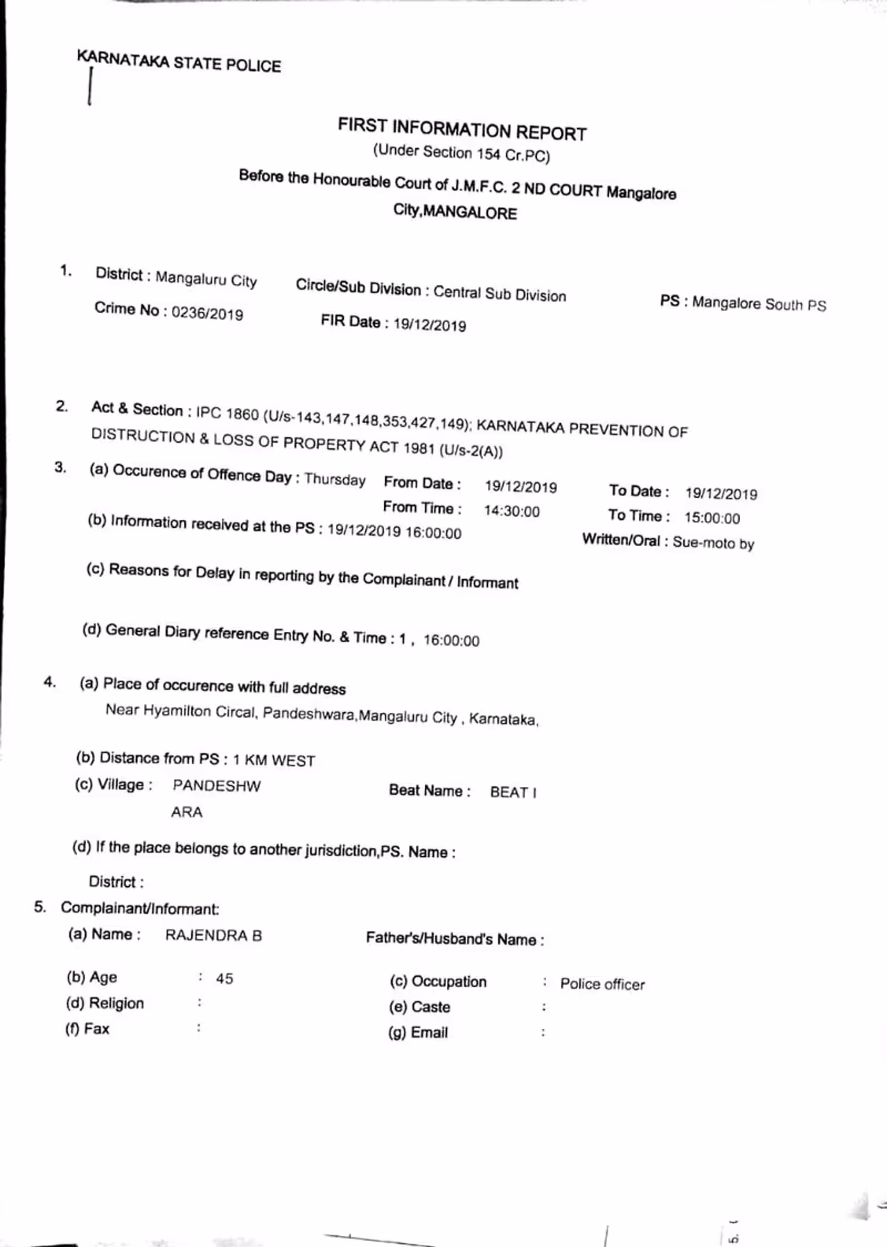 FIR with respect to Mangaluru protests in Karnataka stated that PFI and SDPI have links to the violence caused during the anti-CAA stir on December 19.