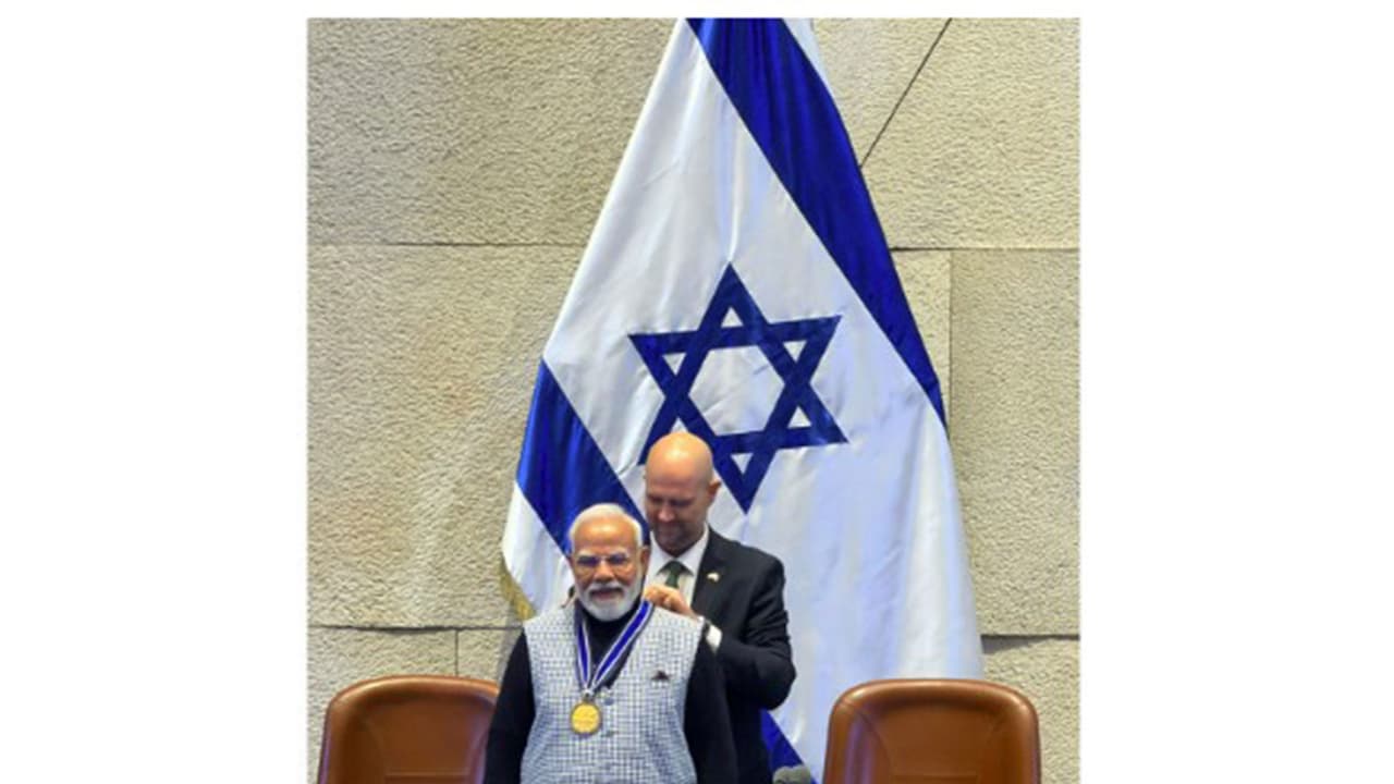 PM Narendra Modi was awarded the Speaker of the Knesset Medal, a top Israeli parliamentary honour. Defence Minister Rajnath Singh and Union Minister Shivraj Singh Chouhan praised the recognition, citing it as proof of deepening India-Israel ties.