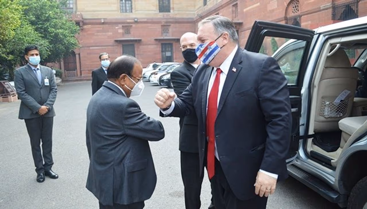 Visiting US Secretary of State Mike Pompeo and US Defence Secretary Mark Esper met National Security Advisor Ajit Doval at South Block on the sidelines of the 2+2 bilateral dialogue.