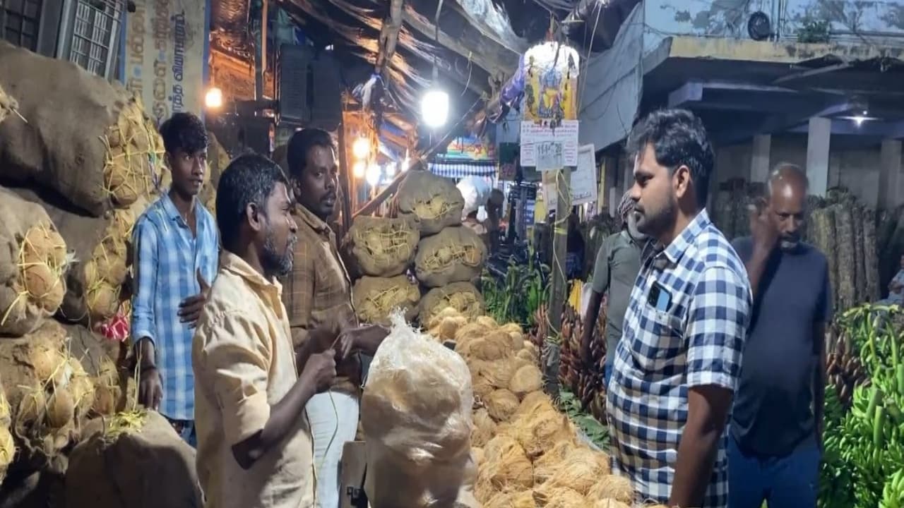 Ahead of Pongal, one of Tamil Nadu's most important festivals, large quantities of agricultural produce have been brought to the Thoothukudi market area for sale from several districts. Essential items for Pongal celebrations, such as coconuts, banana bunches, banana leaves, sugarcane, palmyra tubers, turmeric roots, and other agricultural products, have flooded the market, driving brisk trade. As a result, the Thoothukudi market area is witnessing heavy crowds and a festive atmosphere.
