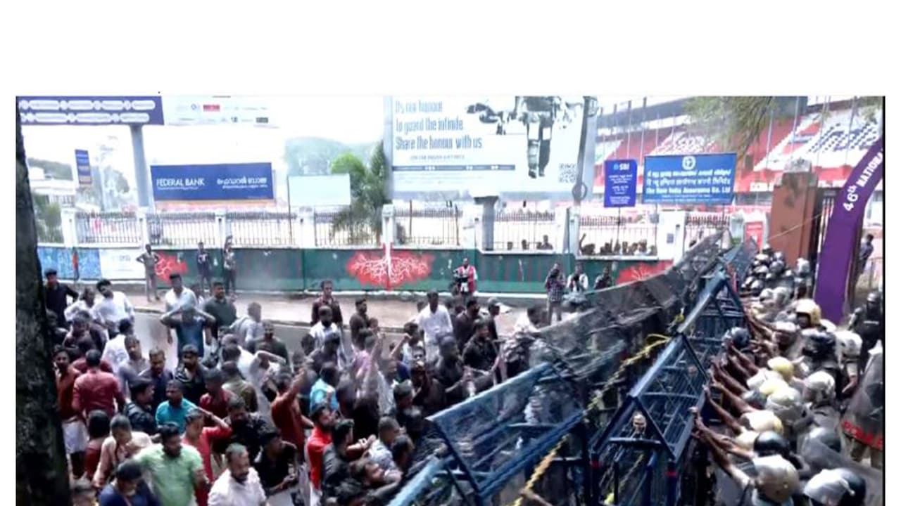 Kerala Police on Tuesday deployed water cannons and teargas shells to disperse protesters of the Bharatiya Janata Yuva Morcha (BJYM), the youth wing of the BJP, who marched towards the Legislative Assembly in protest against the Sabarimala Ayyappa Temple gold theft case. BJYM state President Manu Prasad was injured during clashes between police and protesters. The BJYM has alleged that the ruling Left-Front government and the Congress were involved in the theft of gold from the Sabarimala Temple.
