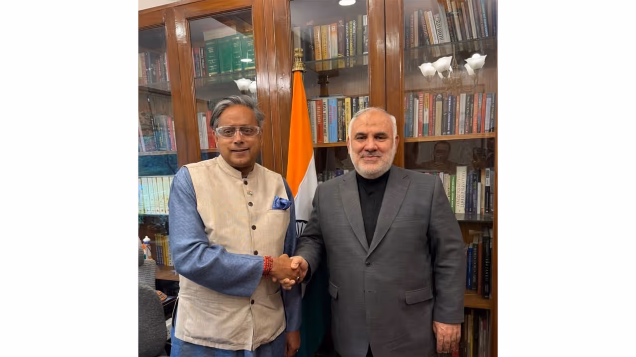 "Received a courtesy call from Iranian Ambassador Mohammad Fathali @iranambIndia yesterday. We had a detailed and constructive discussion on current events and on the prospects for peace and regional stability at this difficult time. The Ambassador, a former Deputy Foreign Minister, was accompanied by Omid Bebelian, the first Iranian diplomat with a PhD in Modern Indian Studies!" Tharoor posted on X.