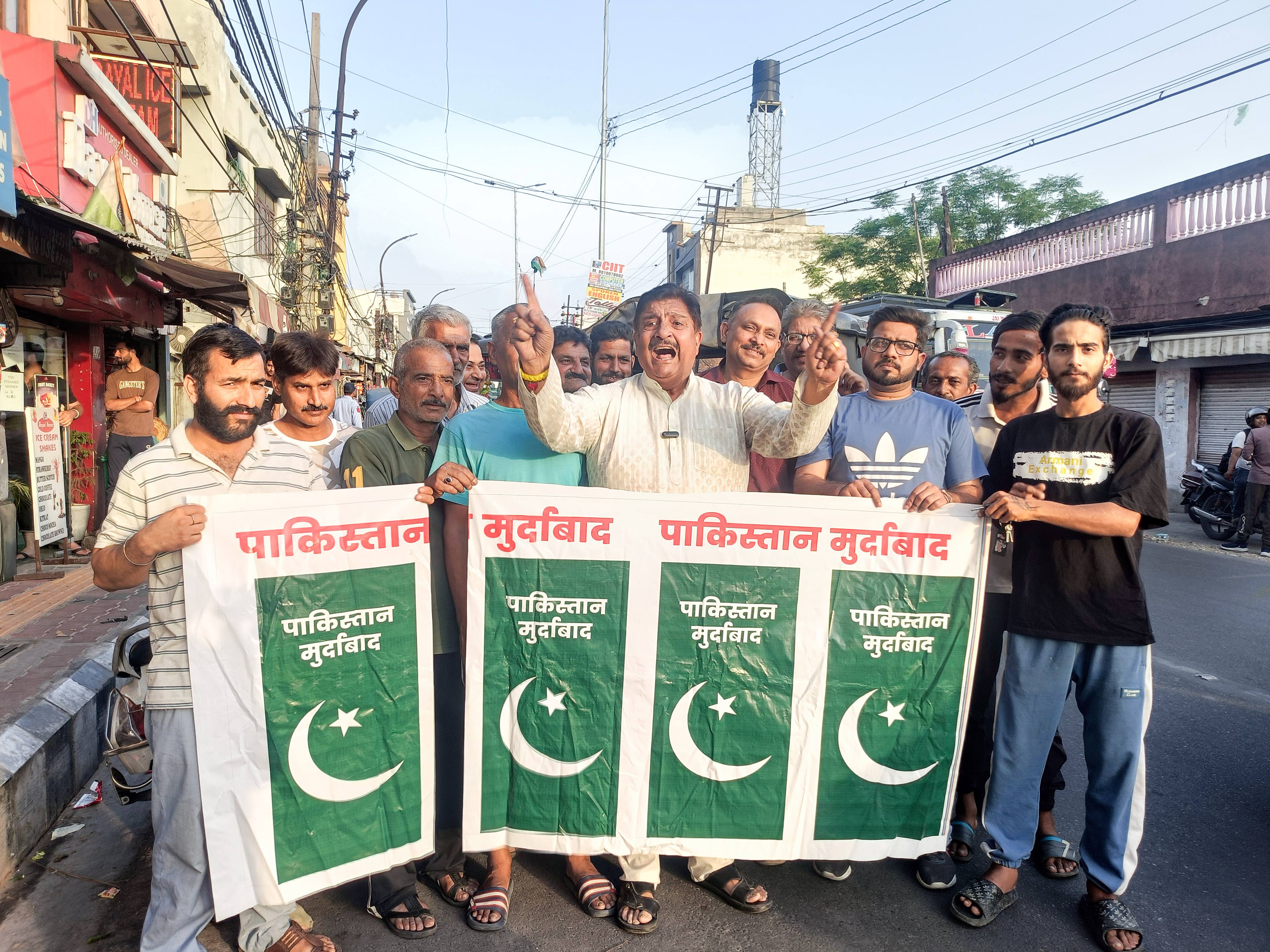 Shopkeepers and hoteliers took out a protest march in Pahalgam today, raising slogans of "Hindustan Zindabad" “Pakistan Haaye Haaye” and "I am Indian".