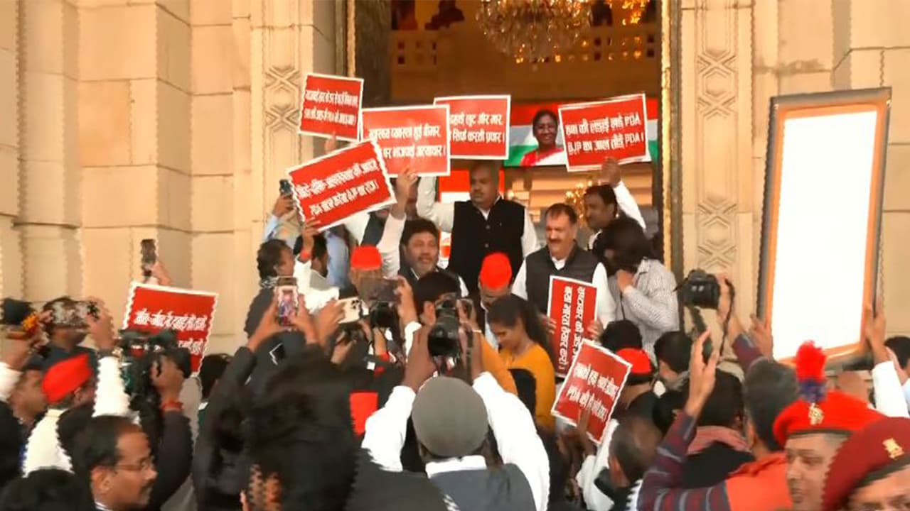 Samajwadi Party MLA Ravidas Mehrotra, during the protest, speaking to ANI, said, "The budget session is starting from today. The government's budget has already been leaked; they are presenting a budget of more than 9 lakh crore rupees. However, of the budget they presented last year, not even 40% has been spent yet. This government has failed on all fronts."