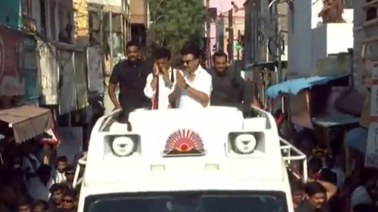 Tamil Nadu Chief Minister and DMK president MK Stalin on Tuesday conducted a roadshow in Villivakkam in Chennai on the last day of campaigning as the state prepares to go to polls on April 23. The roadshow witnessed participation from party workers and supporters who gathered along the route to greet the Chief Minister.