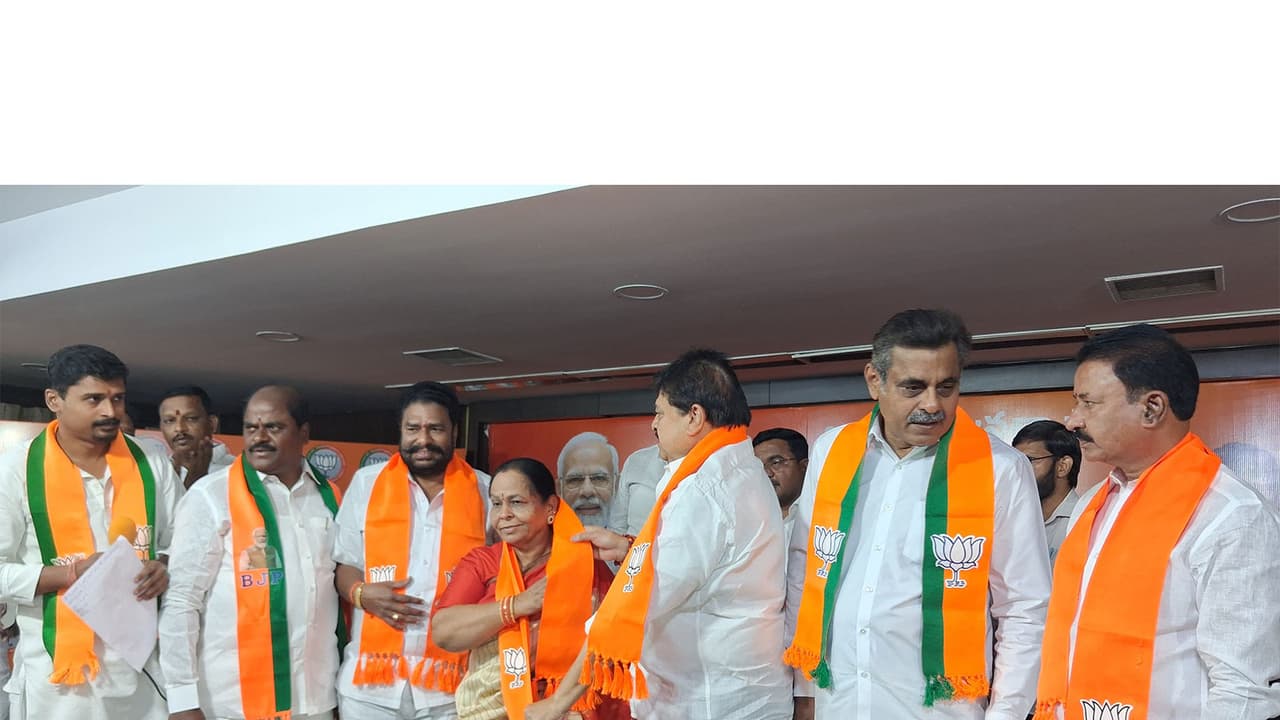 Jillelaguda BRS Party Ex-Corporator Mekala Vijayalakshmi Ravinder Reddy, along with followers, joined the Bharatiya Janata Party (BJP) in the presence of Telangana party State President Ramchander Rao and MP Konda Vishweshwar Reddy at the Telangana BJP State office in Hyderabad's Nampally area. Maheshwaram BJP's contested MLA Andela Sriramulu and other senior BJP leaders participated in the event.
