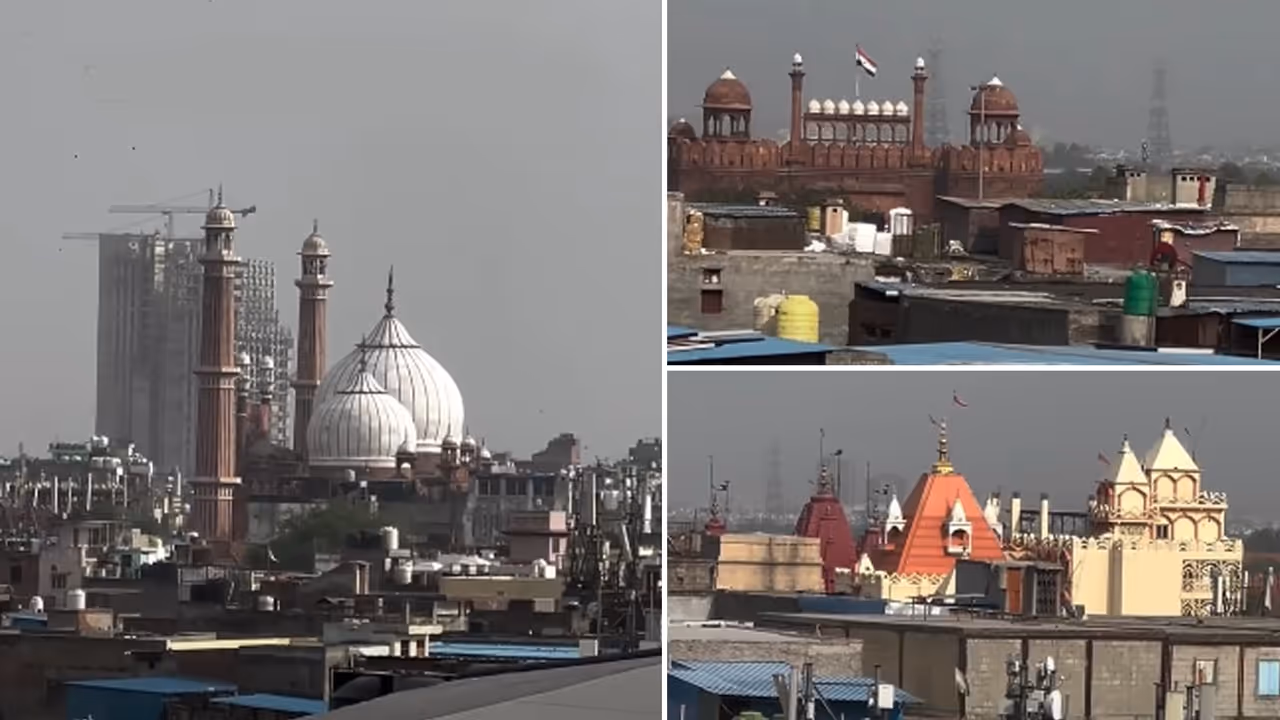 A viral Instagram video posted by Monica Bahl has captured the unique skyline of Old Delhi in a single, powerful frame. Filmed from the Omaxe mall in Chandni Chowk, the video shows the Red Fort, a temple, a gurdwara, and the Jama Masjid standing side-by-side.
