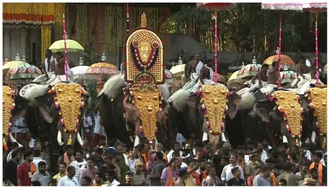 The celebrations began with the ceremonial entrance of the Kanimangalam Sastha through the southern gate on Elephant Chirakkal Kalidasan.