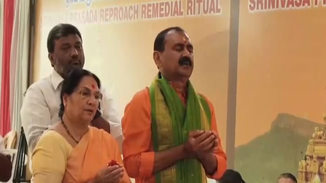 YSRCP senior leader and former TTD (Tirumala Tirupati Devasthanams) chairman Bhumana Karunakar Reddy performed the Srinivasa Prasada Ninda Parihara Homam (Srinivasa Prasada reproach remedial ritual) in Tirupati on Tuesday.