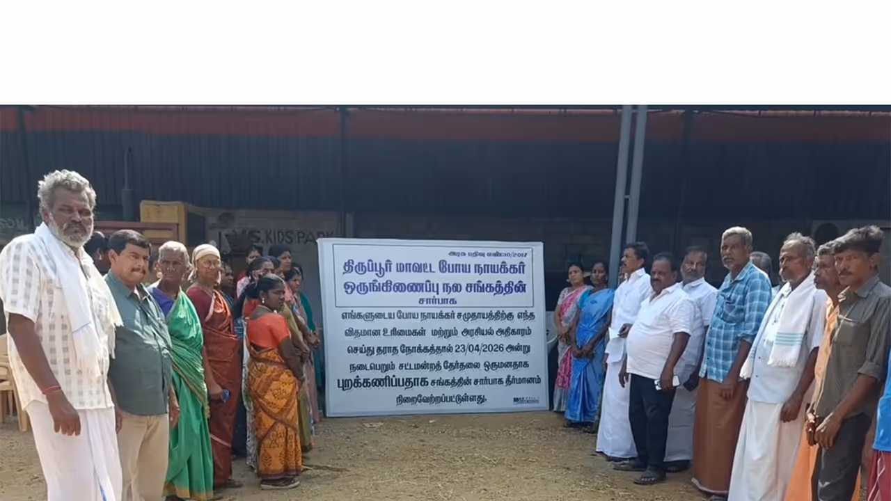 The Boyanayak community in Tiruppur announced a boycott of the Tamil Nadu Assembly polls, citing a lack of political representation. Despite having 80,000 voters, they claim no party has offered them a chance to contest or sought their support.