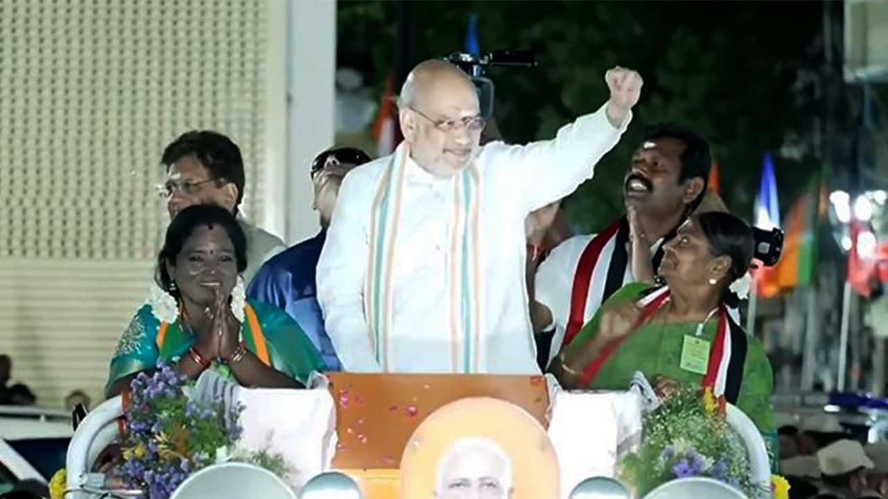 In a post on social media platform X, Amit Shah said, "Mylapore turned saffron today. Watch roadshow at South Chennai."