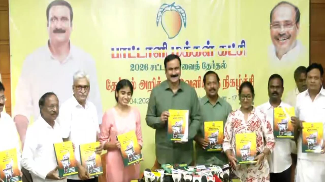 Pattali Makkal Katchi (PMK) President Anbumani Ramadoss released his party's manifesto for the Tamil Nadu elections, promising a drug and liquor-free state, 1 crore jobs for youth, and agricultural support, while criticising the ruling DMK.