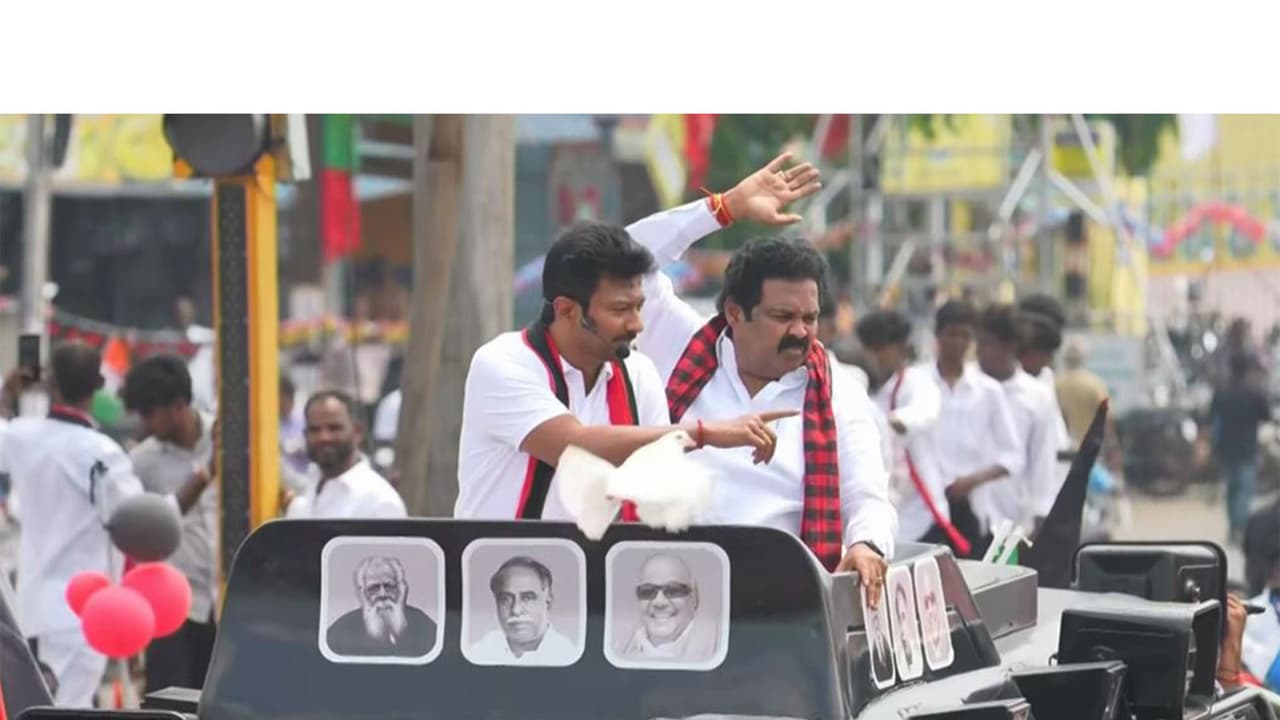 DMK's Udhayanidhi Stalin campaigned in Tiruvallur, highlighting fulfilled promises like free buses for women and laptops for students, while announcing new benefits like increased monthly aid and appliance coupons for women.