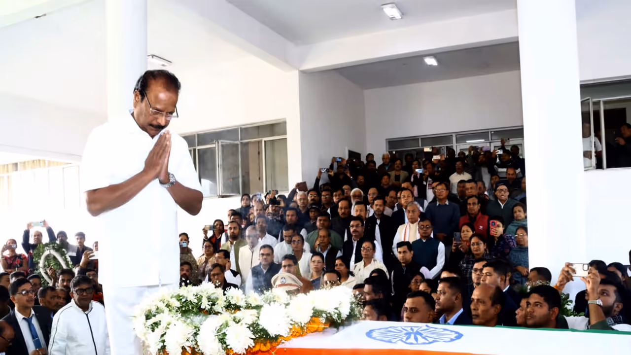 Governor Indra Sena Reddy Nallu on Saturday paid his last respects and offered floral tributes to the late Speaker of the Tripura Legislative Assembly, Biswa Bandhu Sen, at the Assembly premises.