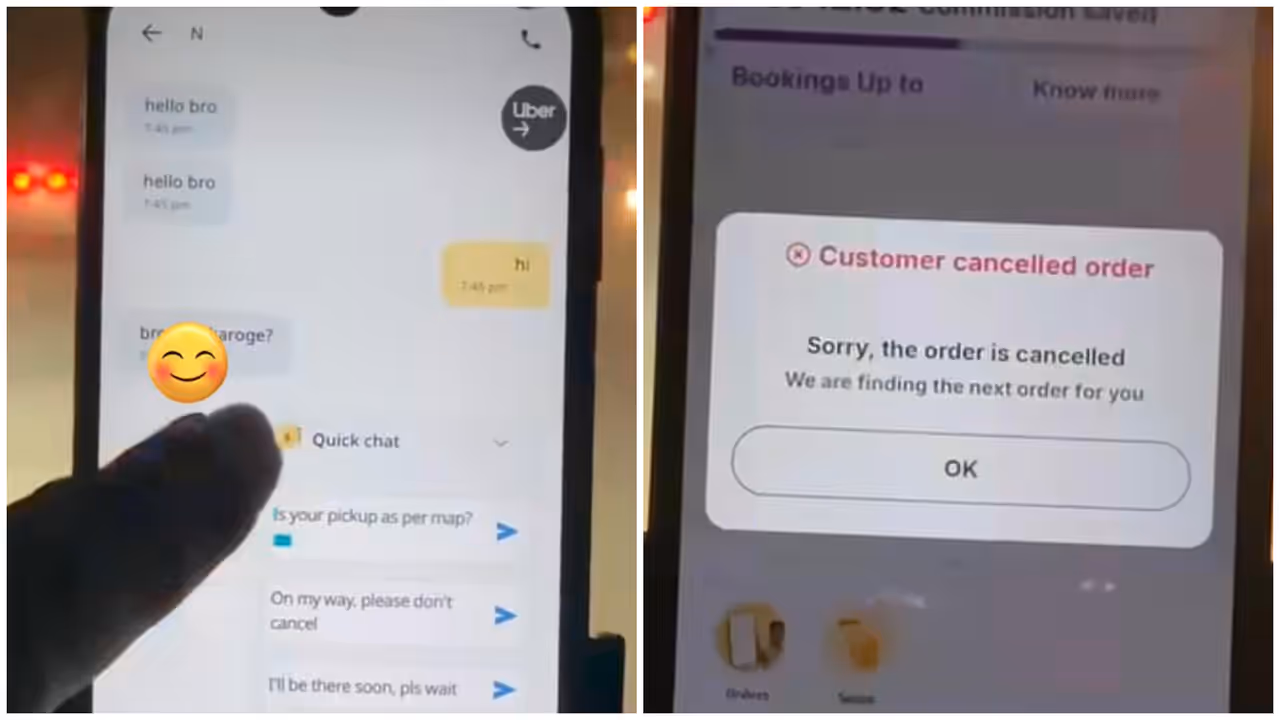 The driver, identified as Vishal, shared a video online claiming that the rider sent inappropriate messages while booking a trip to the ISKCON temple. The screenshots displayed in the video show the conversation that allegedly happened on the app.