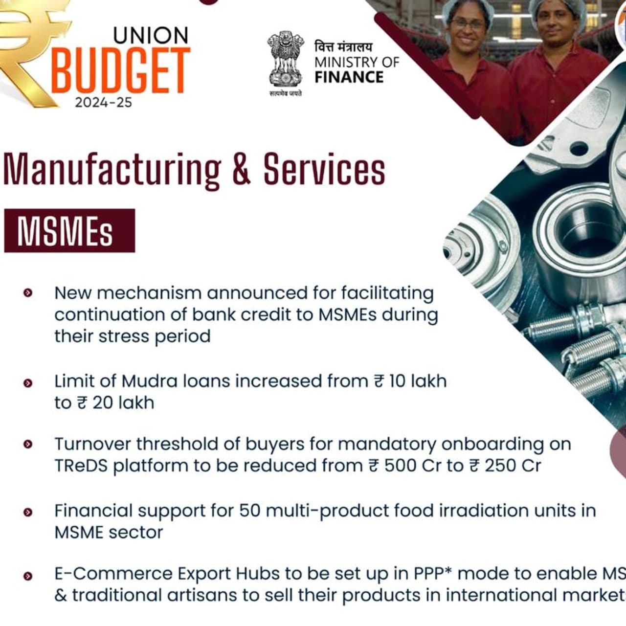 Union Budget 2024: The Budget 2024 doubles the Mudra loan limit to ₹20 lakh for MSMEs. New mechanisms for credit continuity during stress periods are introduced, and SIDBI will open 24 new branches to support MSMEs