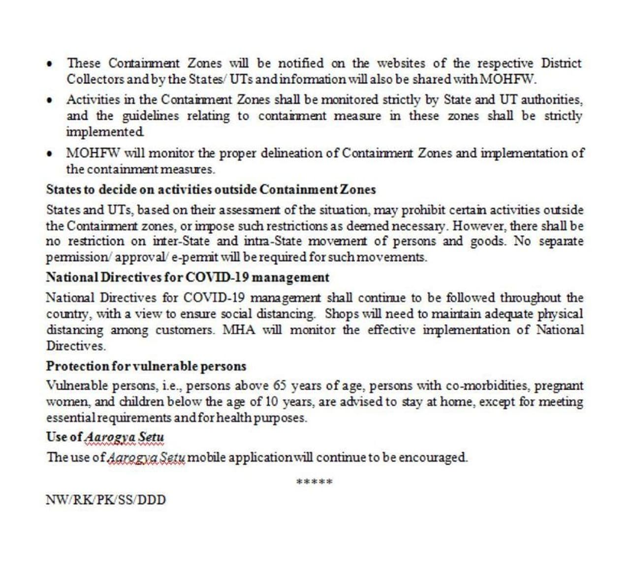 1. In the new guidelines, restriction on movement of individuals during night has been removed
