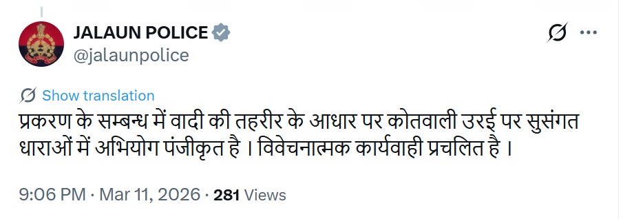 Meanwhile, the girl has been sent for counselling and a medical examination. The Jalaun Police also shared information about the incident on its official X account.