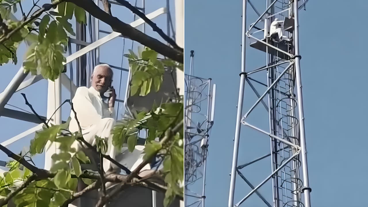 A retired CRPF jawan climbed a mobile tower in Bulandshahr, Uttar Pradesh, protesting over ₹12 lakh allegedly unpaid by two people. Bhawar Singh remained on the tower for nearly an hour before police convinced him to come down safely. He said financial stress had badly affected his family. Police have assured action, are checking his bank details.