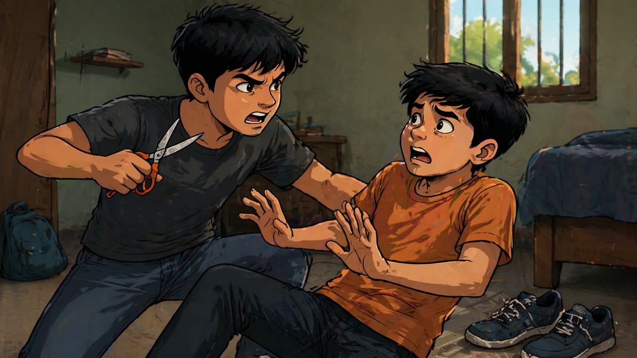 What started as a small fight soon turned physical. In a sudden burst of anger, Suraj allegedly picked up a pair of scissors lying nearby and attacked his younger brother.