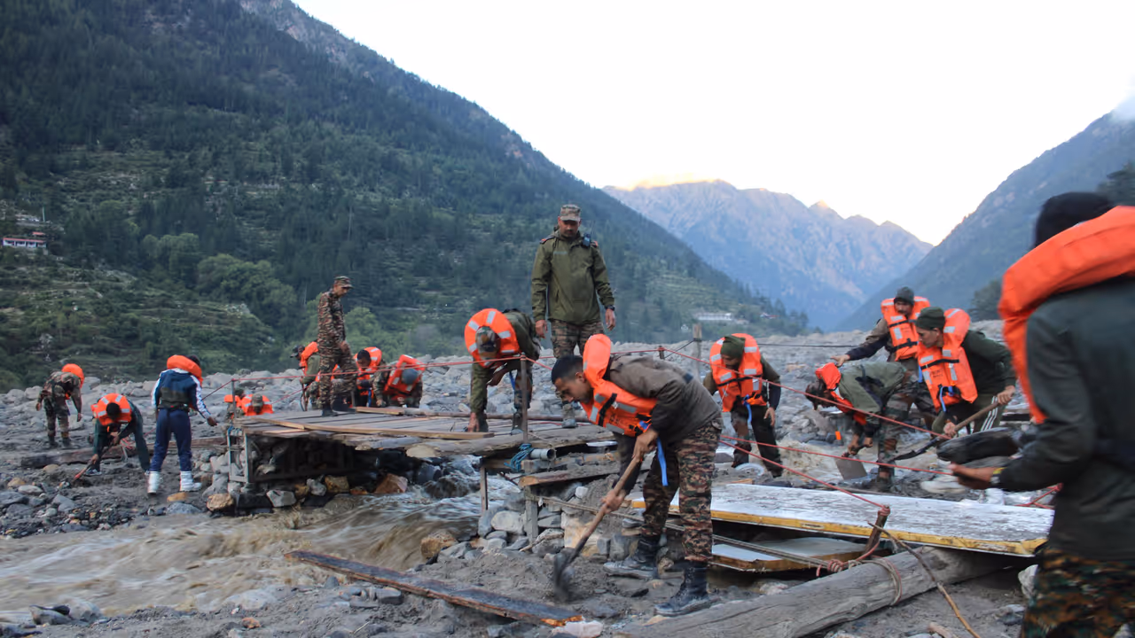 Uttarkashi (Uttarakhand): Rescue and relief operations by the Indian Army, Indo-Tibetan Border Police (ITBP), National Disaster Response Force (NDRF) and State Disaster Response Force (SDRF) are underway in Dharali and Harsil. As many as 816 civilians have been rescued so far. Under Operation Dharali, the Indian Army saw victory in its efforts to restore mobile and internet connectivity in Uttarakhand's Harsil. Road access is open till Limchigad; and work is in progress to construct a 90-ft Bailey Bridge and conversion of a 2 km foot track between Harsil and Dharali into an all-terrain route. The air plan includes two Mi-17 helicopters and one Chinook from Dharasu for stores and personnel induction, with eight civilian helicopters from Matli continuing evacuations, supported by clear weather in the Matli–Harsil sector enabling sustained operations.