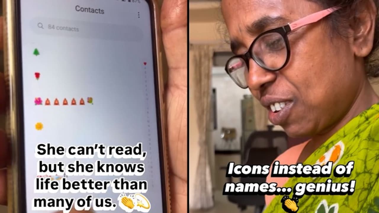 A Pune woman shared a viral video of her house help, Jharna, who is unable to read and has devised an ingenious system to save phone contacts using only emojis. Each emoji serves as a visual cue to identify a person or place, showcasing a remarkable example of real-world intelligence.