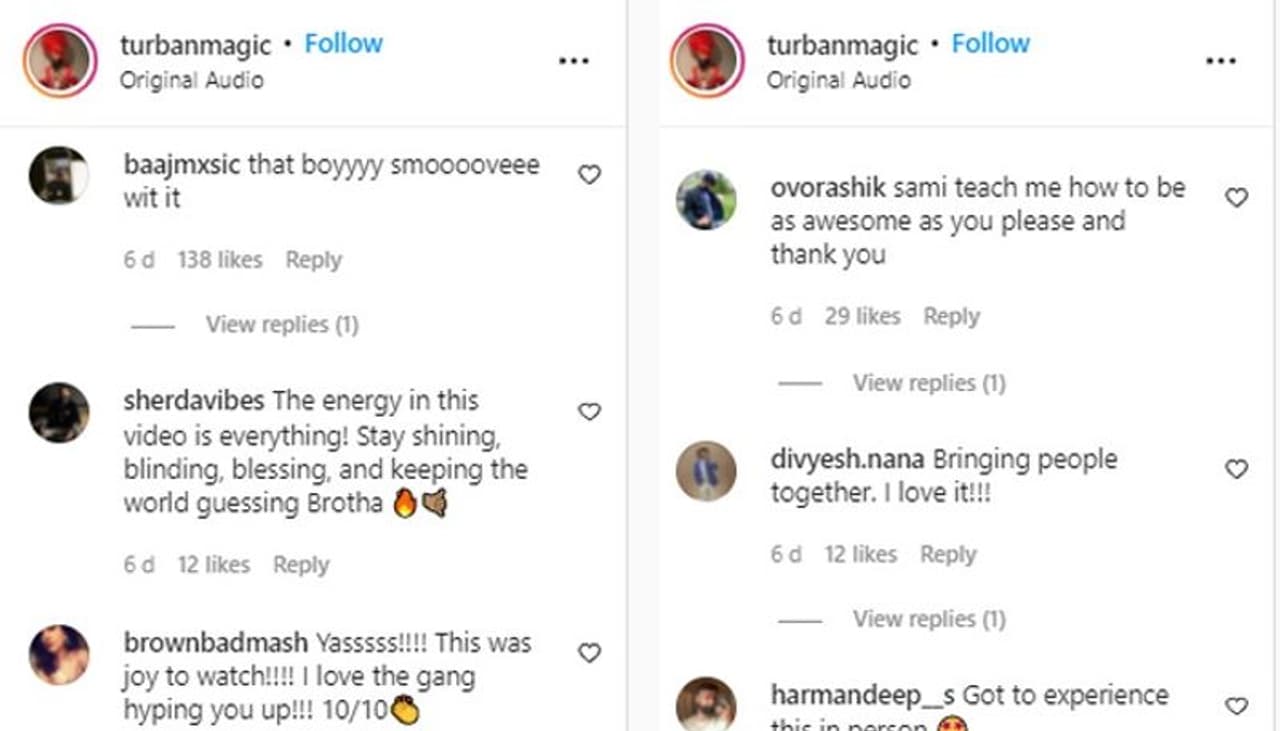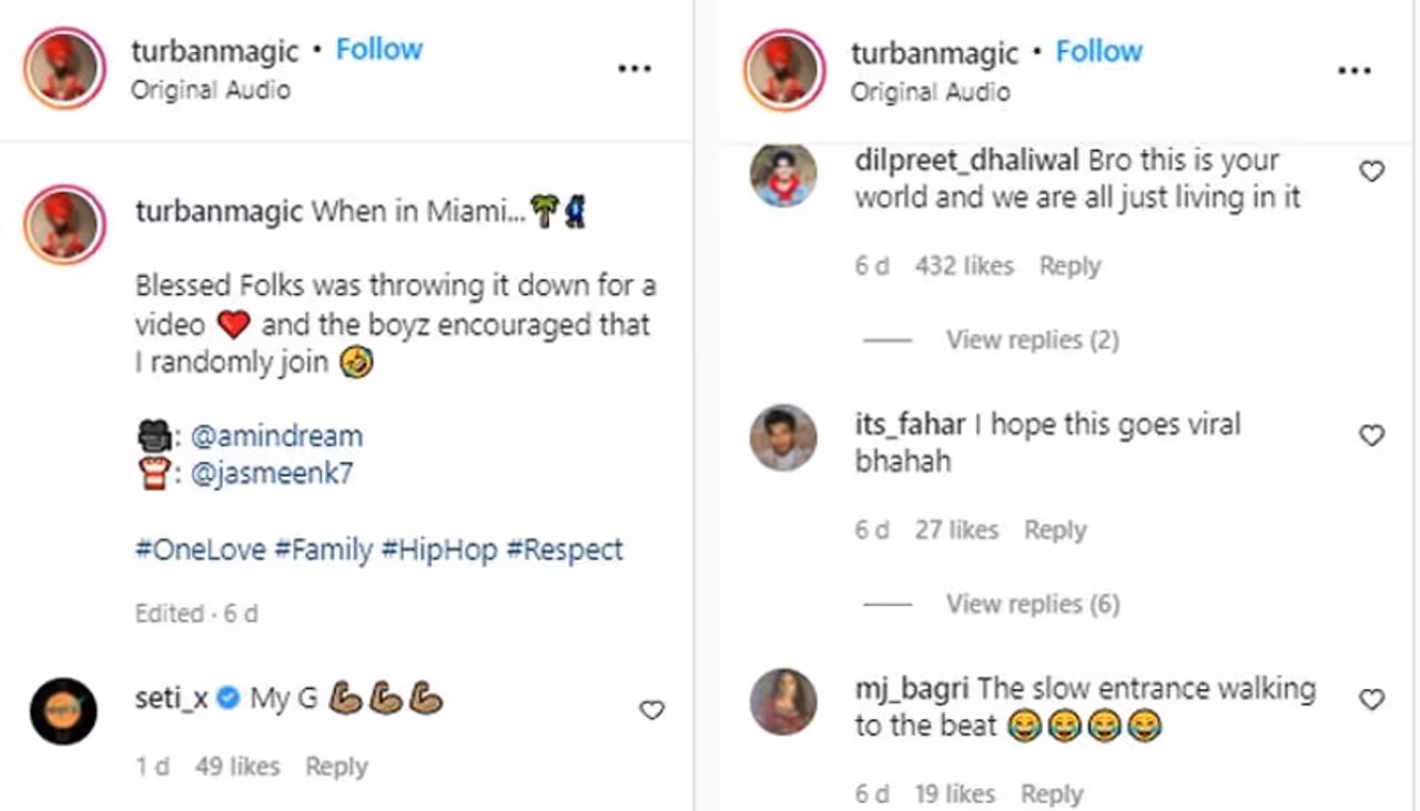 Saminder, who goes by the name @turbanmagic on Instagram, captioned the video, "When in Miami... Blessed Folks was throwing it down for a video and the boyz urged that I spontaneously join." When he was persuaded to join them, he erupted into an impromptu dance that drew applause from the audience. Others were spotted recording and shouting as the college student nailed it on the dance floor.