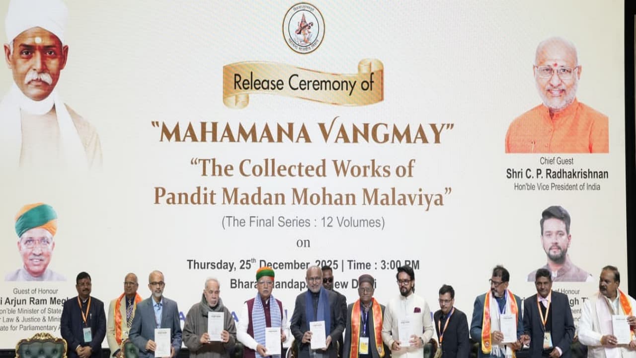 Vice President C P Radhakrishnan released 'Mahamana Vangmay', the final collected works of Pandit Madan Mohan Malaviya. He hailed Malaviya as a towering nationalist, visionary, and educationist who bridged India's ancient values and modern aspirations.