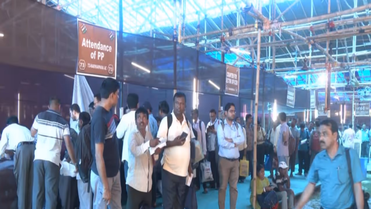 Final preparations are underway in Berhampore as officials dispatch EVMs ahead of the first phase of West Bengal Assembly elections. Polling staff noted strict security arrangements, with a large presence of CRPF personnel.