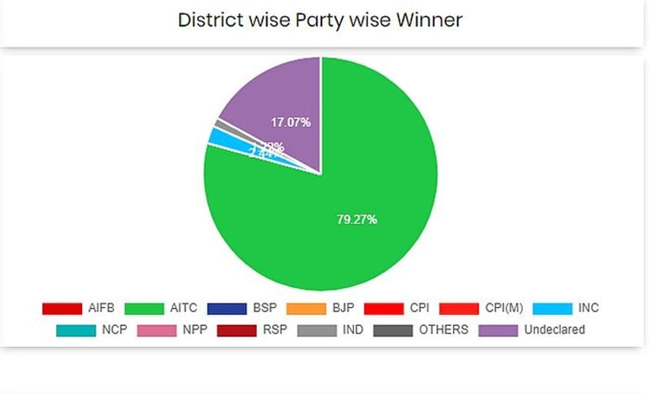 The Trinamool Congress swept through the South 24 Paraganas district in the 2022 West Bengal municipal election. The TMC has won a massive 103 wards so far out of a total of 119. The Bharatiya Janata Party and the Communist Party of India-Marxist have been blanked out here. The Congress managed to win a meagre 2 wards in the district. Two independent candidates also registered victories here.