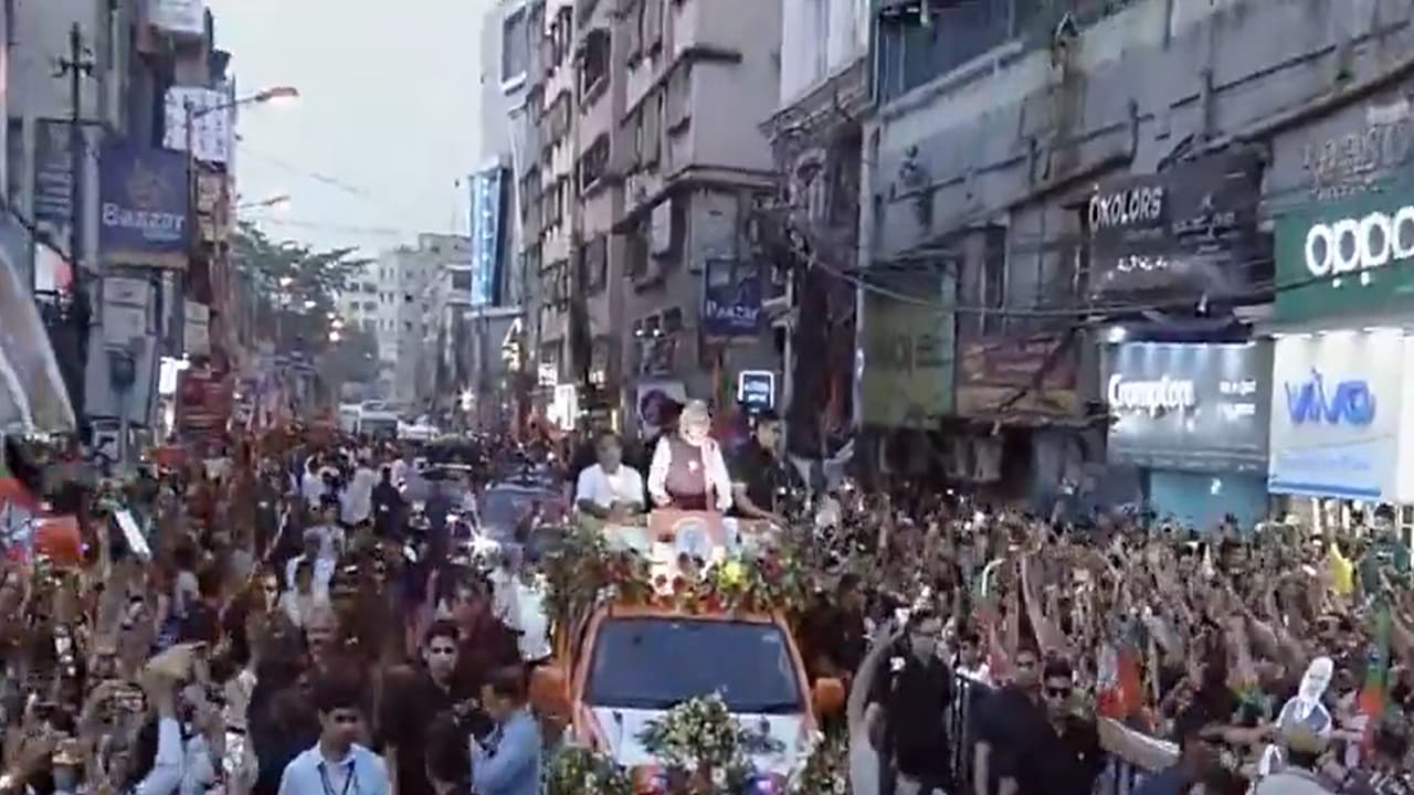 Prime Minister Narendra Modi on Thursday held a massive roadshow in Howrah as part of the election campaign for the second phase of the West Bengal Assembly polls. Earlier in the day, the PM, addressing an election rally in Mathurapur, alleged that the ruling TMC has "usurped the rights of the women of Bengal".