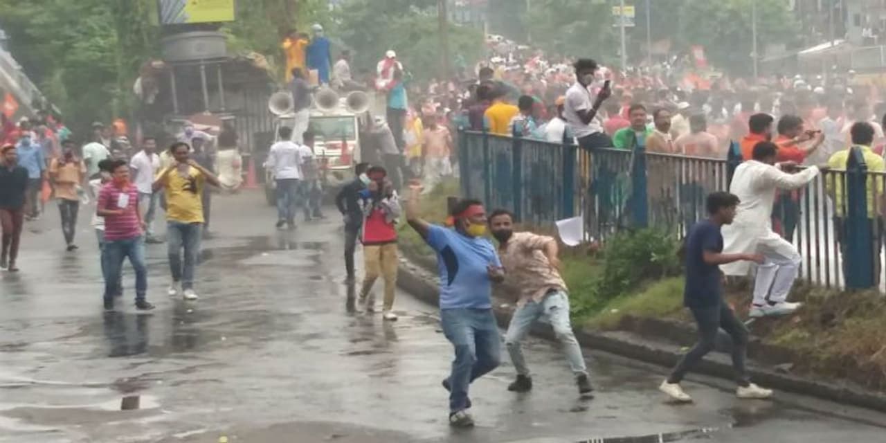 After a while, it was seen that the water cannon was turned on. BJP state president Dilip Ghosh's car was still far behind. BJP supporters started violence amid the procession.