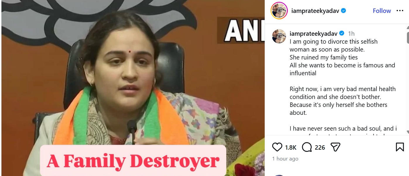 According to him, Prateek never made any public statement about seeking a divorce. He added that the family was surprised by the post and does not accept its claims. The clarification came after Prateek’s account carried allegations against Aparna Yadav, accusing her of damaging family relationships and stating that he planned to divorce her.