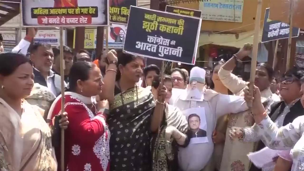 BJP women workers in Moradabad protested against Congress and SP over the defeat of the Women's Reservation Bill, burning a Rahul Gandhi effigy. UP CM Yogi Adityanath also led a 'Jan Aakrosh Mahila Padyatra' over the bill's failure to pass.