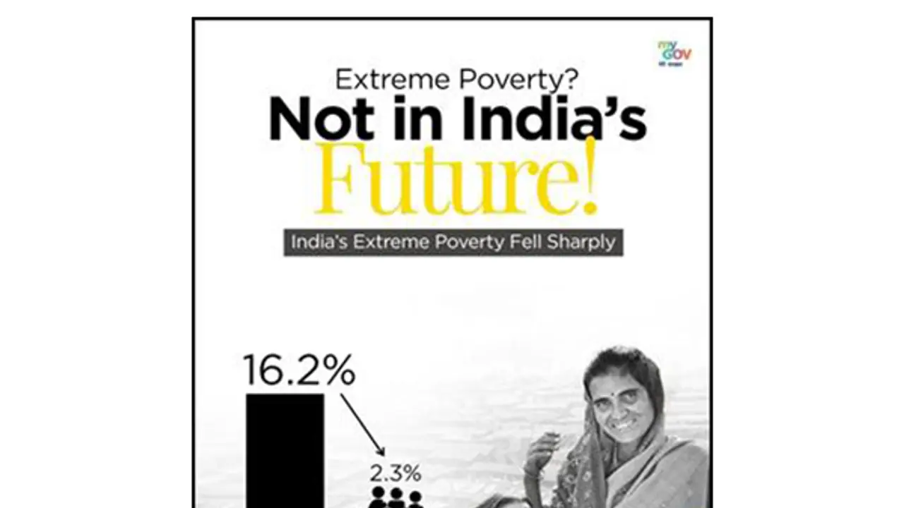 According to a World Bank report, extreme poverty (defined as living on less than USD 2.15 per day) decreased from 16.2 per cent in 2011-12 to 2.3 per cent in 2022-23, lifting 171 million people in India above this threshold.
