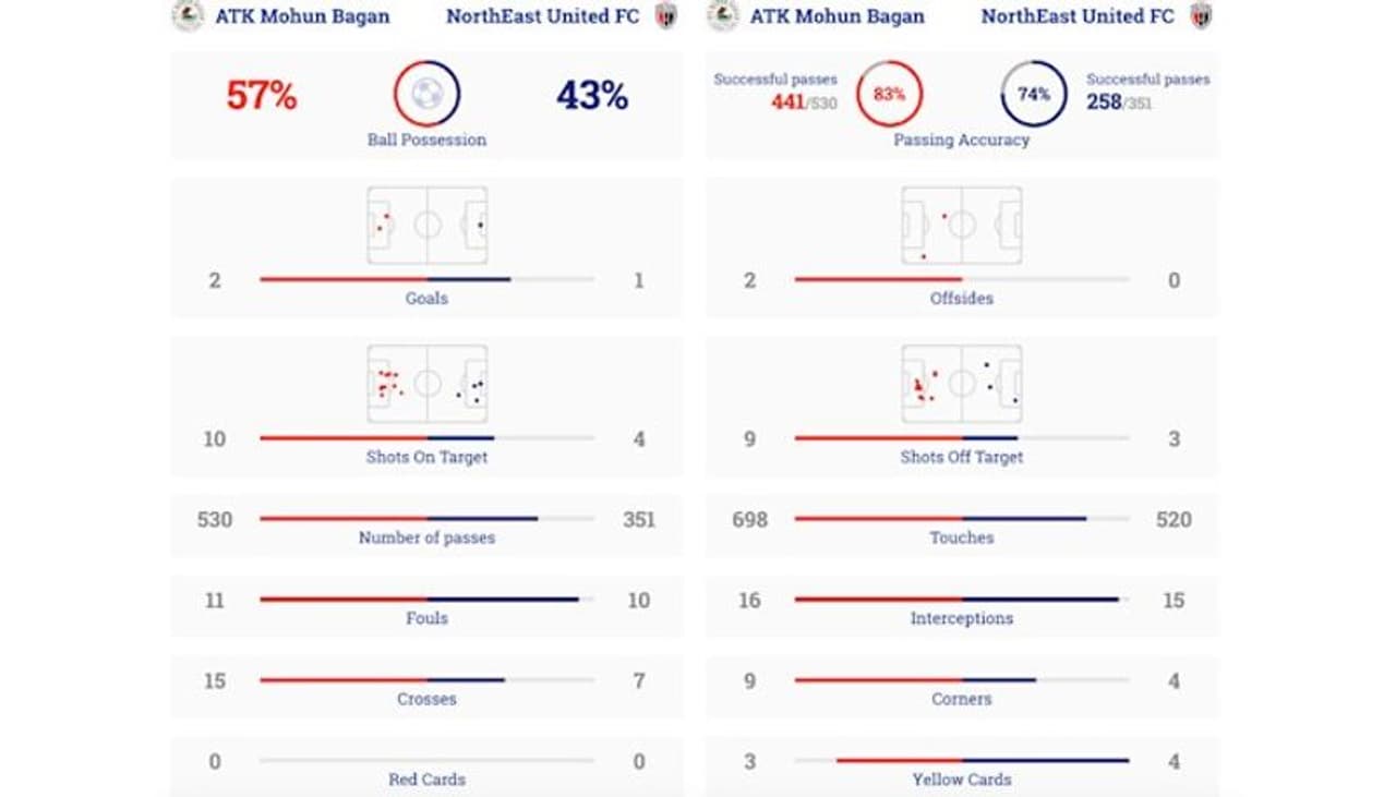 NorthEast United FC created the game's first chance via Parthib just 15 seconds after kick-off. The young striker could not get a good touch on the ball before Pritam Kotal put it out for a corner. On the counter, Dimitri Petratos buried the ball in the back of the net, but the goal was chalked off because the ATKMB striker had strayed offside.