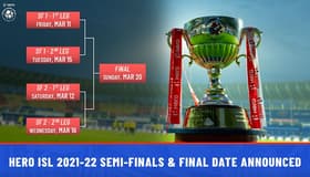 The ISL 2021-22 semis and final schedule have been announced. The semis will be played in two legs between March 11-16. The final will be held on March 20.
