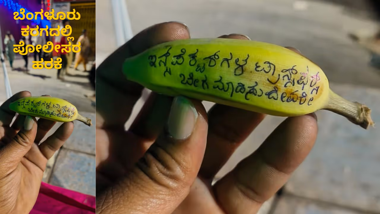During Bengaluru’s grand Karaga festival, a unique act of devotion caught the attention of many. A police officer was seen offering a banana as a special prayer, seeking divine intervention to clear hurdles in the transfer of an inspector. For the past eight months, inspector transfers within Bengaluru city have been stalled, leaving many officers frustrated and awaiting their moves. This heartfelt plea during the Karaga, blending tradition with personal hopes, has now gone viral on social media, sparking conversations about devotion and patience amid professional challenges.