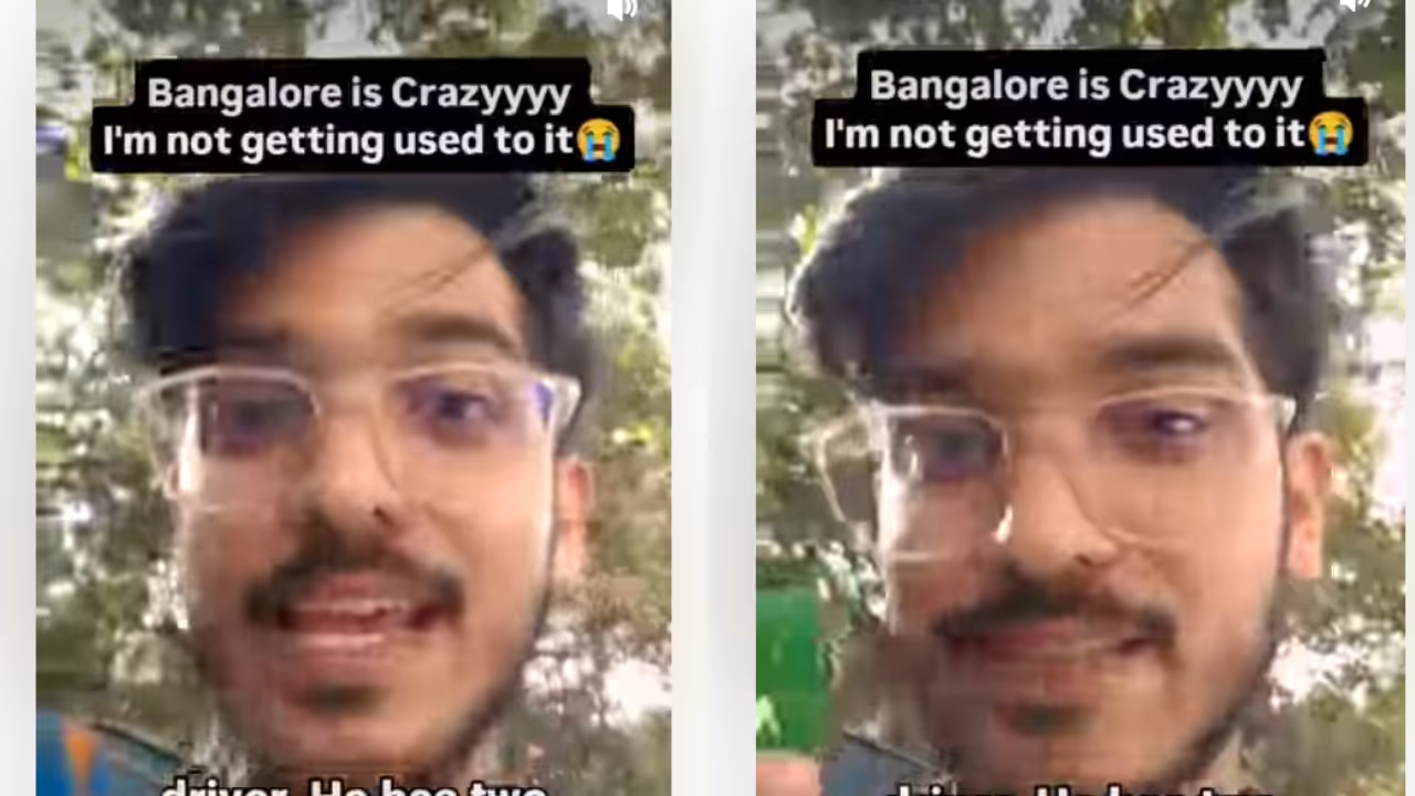 The text overlay on the video read: “Bengaluru is crazy. I am not getting used to it.”